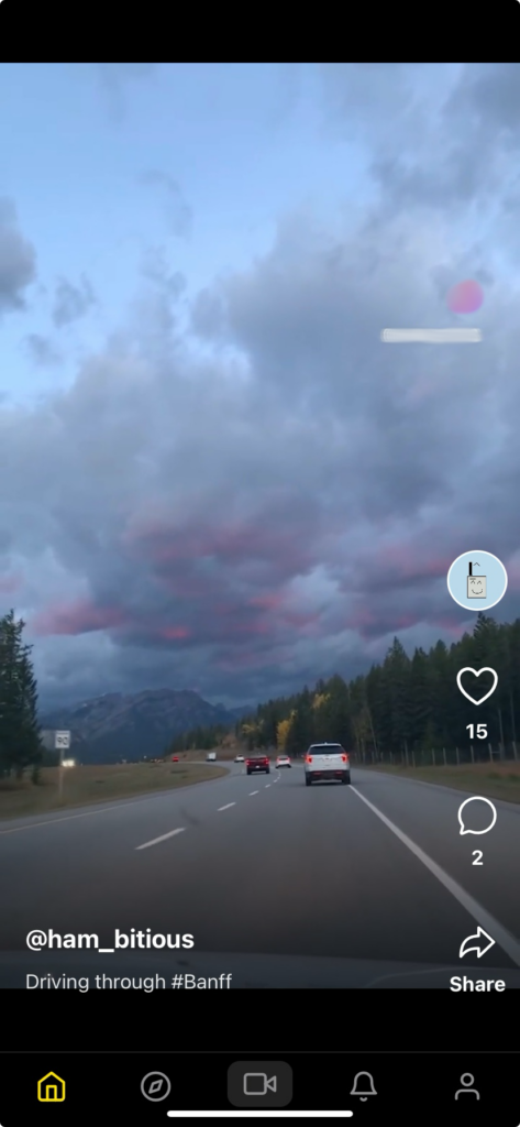 Te recibe directamente el Feed de inicio. Una especie de página global donde puedes ver vídeos recientes de la red. No existe algoritmo todavía, así que muestra todos los posts de la red. Ciertamente, los primeros días había pocos posts, y recuerdo que el primer día podías hacer scroll hasta llegar al primer loop, pero cada vez se publican más. En algún momento esto cambiará para favorecer los de las cuentas que sigas, probablemente.
